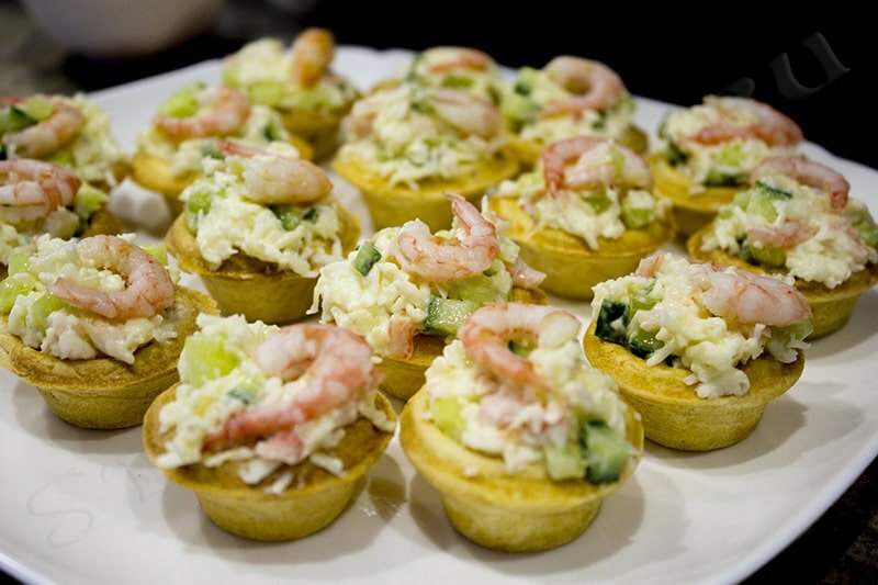 Праздничный стол включает в себя всевозможные закуски, а это не только бутерброды и всевозможные нарезки, но и красиво оформленные тарталетки с начинкой. Что явно придаст более шикарный вид праздничному столу. Закуски в тарталетках можно приготовить с разнообразными начинками, используя так же и свежие овощи, и поиграть с цветовой гаммой в оформлении. В своем рецепте я хочу вам показать, как можно приготовить тарталетки с огурцами, креветками и сыром, свежие огурцы придадут закуске в тарталетках нотку свежести.